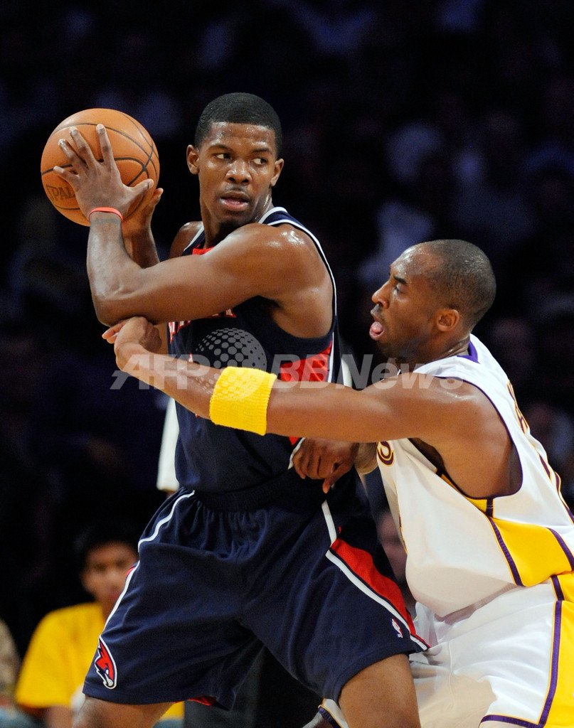 シーズン初黒星を喫したホークスは、第1クォーターに18得点を記録したジョー・ジョンソン(Joe Johnson)が27得点、ジャマール・クロフォード(Jamal Crawford)が17得点、マイク・ビビー(Mike Bibby)が15得点、新人のジェフ・ティアグ(Jeff Teague)が12得点を記録したが、第3クォーターのレイカーズの攻撃を止めることができず突き放された。(c)AFP