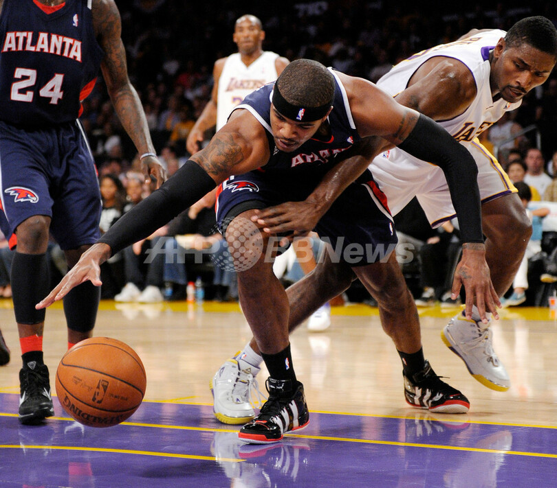 シーズン初黒星を喫したホークスは、第1クォーターに18得点を記録したジョー・ジョンソン(Joe Johnson)が27得点、ジャマール・クロフォード(Jamal Crawford)が17得点、マイク・ビビー(Mike Bibby)が15得点、新人のジェフ・ティアグ(Jeff Teague)が12得点を記録したが、第3クォーターのレイカーズの攻撃を止めることができず突き放された。(c)AFP