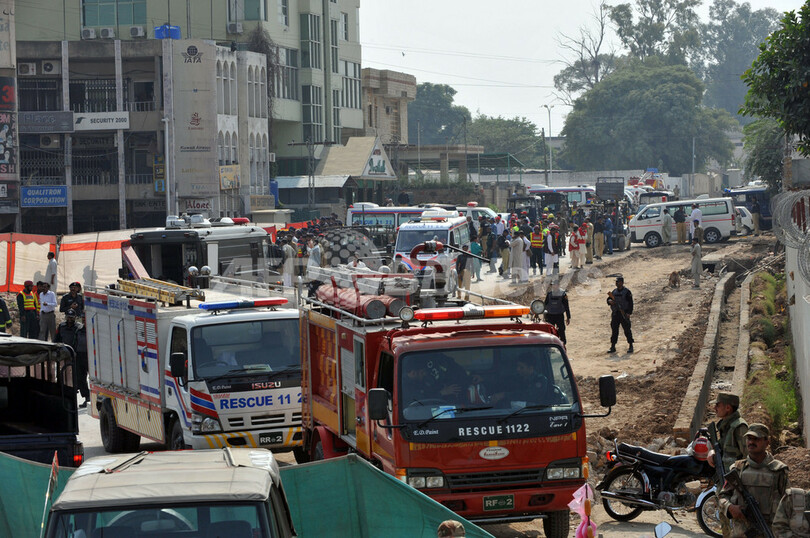 自爆攻撃のあった現場は、10月に武装集団10人が24時間近く立てこもり23人が死亡する事件が起きたばかりのパキスタン軍総司令部や、高級ホテル「パールコンチネンタルホテル(Pearl Continental Hotel)」のそばだった。