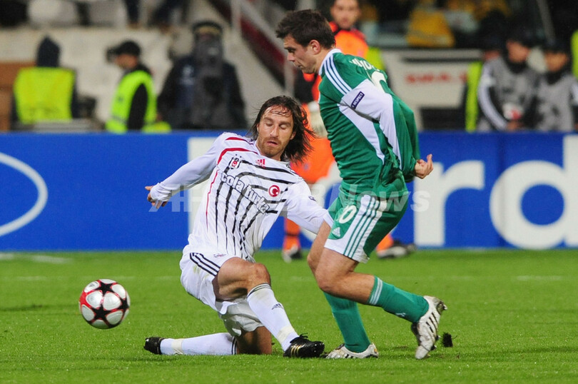 欧州チャンピオンズリーグ2009-10(%%UEFA Champions League 2009-10%%)グループB第4節、ベシクタシュ(%%Besiktas%%)対VfLボルフスブルク(%%VfL Wolfsburg%%)。試合はボルフスブルクが3-0で快勝した。写真ベシクタシュのウグル・インチェマン(%%Ugur Inceman%%)からタックルを受けるボルフスブルクのクリスティアン・ゲントナー(%%Christian Gentner%%、右)。(2009年11月3日撮影)(c)AFP/MUSTAFA OZER