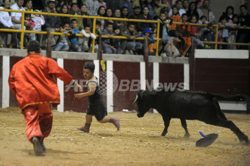 【11月6日 AFP】コロンビア・クンディナマルカ(Cundinamarca)州の都市El Rosalで2日、道化師と低身長症の人たちによる闘牛士グループ「Tintin and his Bullfighter Dwarfs」のメンバーの闘牛パフォーマンスが行われた。同グループは全国で開かれる守護聖人の祭りでパフォーマンスを行っている。(c)AFP