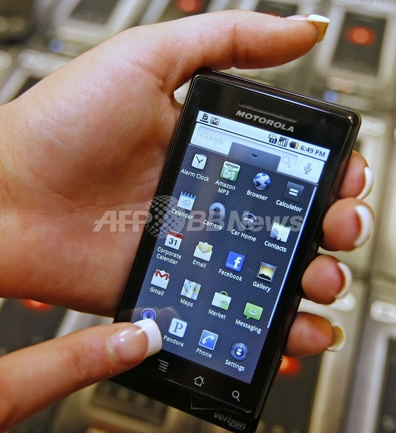 【11月6日 AFP】米モトローラ(Motorola)が米通信大手ベライゾン(Verizon)向けに製造した新型多機能携帯電話(スマートフォン)「ドロイド(Droid)」が6日、発売された。米グーグル(Google)の携帯端末向け次世代基本ソフト(OS)「アンドロイド(Android)」を採用している。