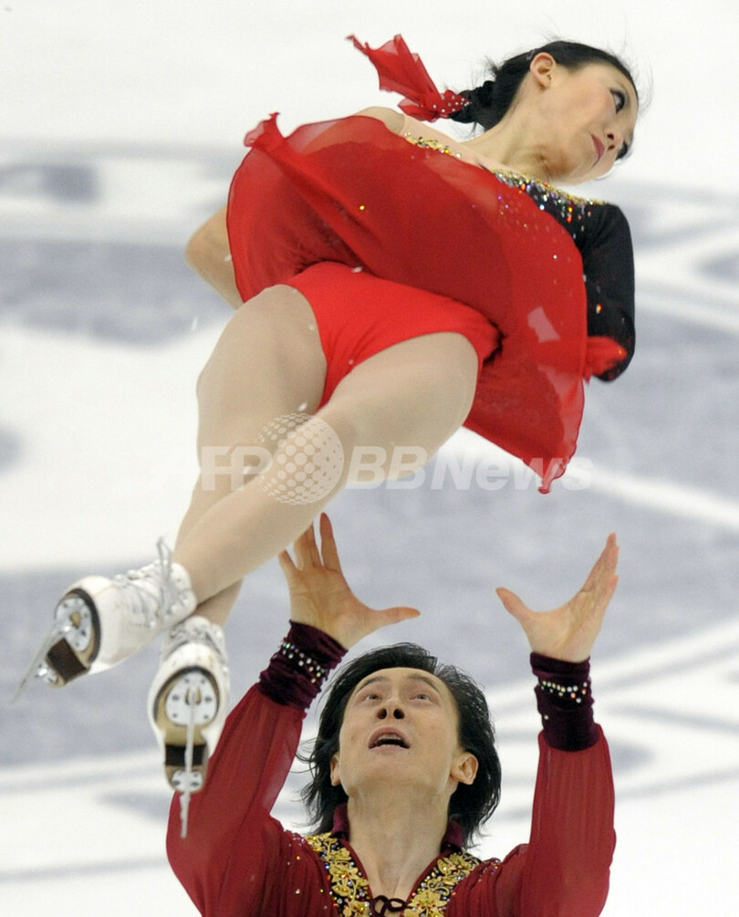 【11月7日 AFP】(写真追加)09-10フィギュアスケートGPシリーズ第4戦NHK杯(NHK Trophy 2009)ペア・フリースケーティング(FS)。ショートプログラム(SP)で2位につけたホウ清(Qing Pang、クィン・パン)/トウ健(Jian Tong、ジャン・トン、中国)組が、FSで首位となる132.35点を記録し、合計199.65点で逆転優勝した。
