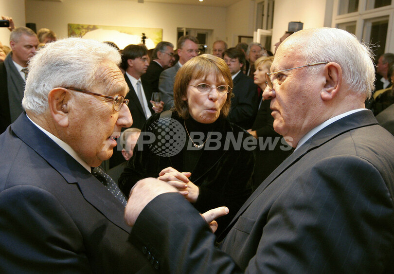 写真は同博物館で会話を交わすヘンリー・キッシンジャー(Henry Kissinger)元米国務長官(左)とミハイル・ゴルバチョフ(Mikhail Gorbachev)元ソ連大統領(2009年11月8日撮影)。(c)AFP/DDP/BERND SETTNIK