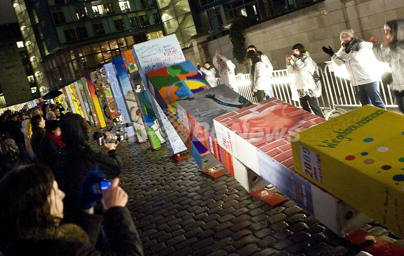 「ベルリンの壁」崩壊20年を祝う巨大ドミノ倒し