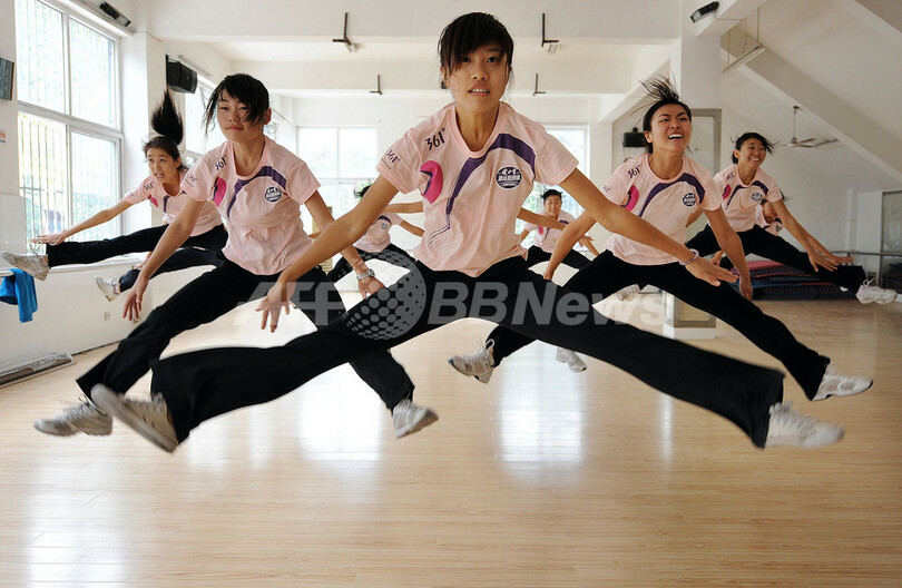 10年大会にむけてトレーニング、チアリーダーの少女たち 中国