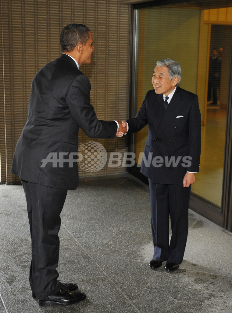 ニュース ライフ オバマ大統領、天皇・皇后両陛下と昼食会 2009年11月14日 16:22 発信地:東京 [ アジア・オセアニア 東京 ] このニュースをシェア ‹ › ❮ 6/7 ❯ 13日から14日にかけて初来日したバラク・オバマ(Barack Obama)米大統領は14日、天皇、皇后両陛下との昼食会のため皇居・御所を訪れた。写真は、出迎えられた天皇陛下(Emperor Akihito)と握手をしながらお辞儀をするオバマ大統領(2009年11月14日撮影)。(c)AFP/Mandel NGAN 画像作成中 ! 【11月14日 AFP】13日から14日にかけて初来日したバラク・オバマ(Barack Obama)米大統領は14日、天皇、皇后両陛下との昼食会のため皇居・御所を訪れた。(c)AFP ライフ 一覧へ> メディア・報道関係・法人の方向け 写真・動画 購入のお問合せ>