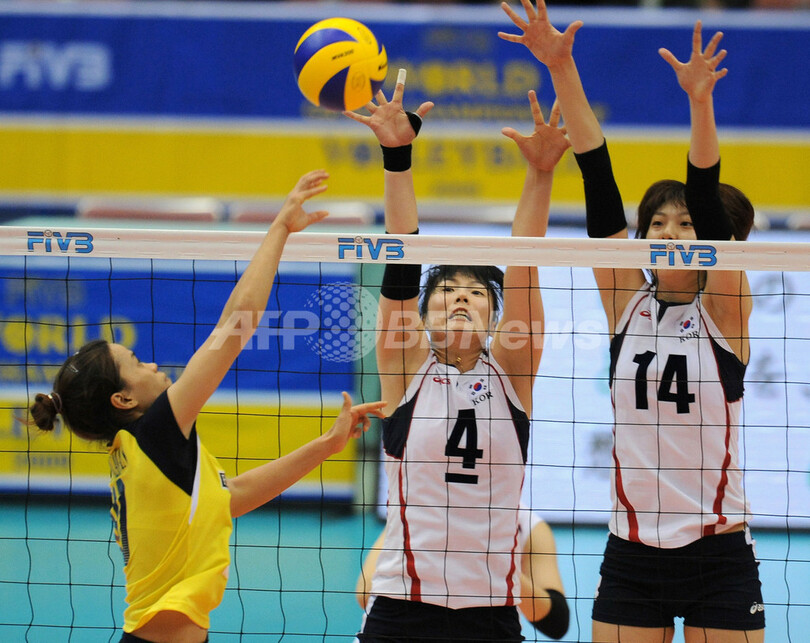 韓国はセットカウント3-2(25-18、25-19、16-25、14-25、15-11)でタイに勝利し、イタリアはセットカウント3-0(25-21、25-23、25-21)でブラジルを下して4連勝を飾った。(c)AFP