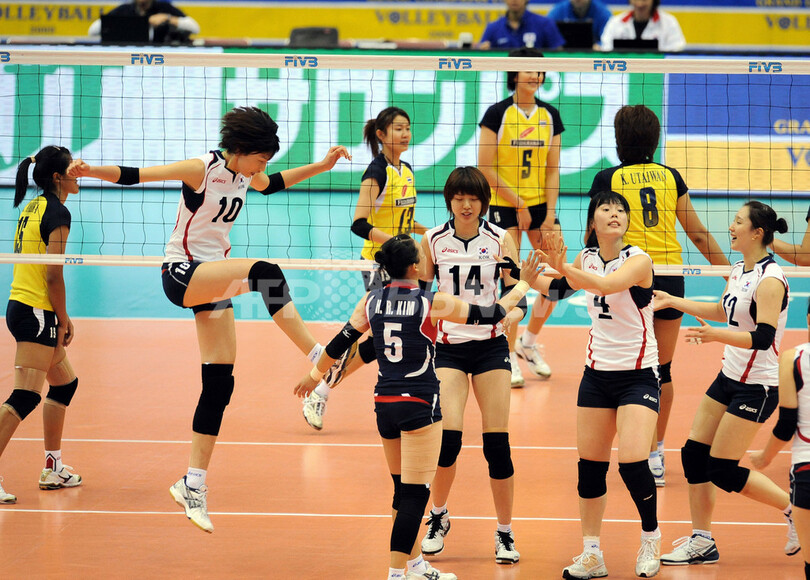 韓国はセットカウント3-2(25-18、25-19、16-25、14-25、15-11)でタイに勝利し、イタリアはセットカウント3-0(25-21、25-23、25-21)でブラジルを下して4連勝を飾った。(c)AFP
