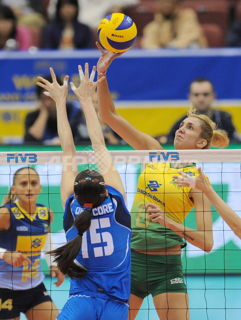 韓国はセットカウント3-2(25-18、25-19、16-25、14-25、15-11)でタイに勝利し、イタリアはセットカウント3-0(25-21、25-23、25-21)でブラジルを下して4連勝を飾った。(c)AFP