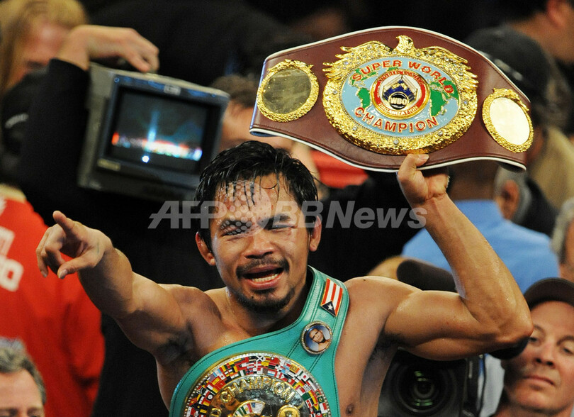 【11月15日 AFP】ボクシングWBO世界ウエルター級タイトルマッチ、挑戦者マニー・パッキャオ(Manny Pacquiao、フィリピン)は王者ミゲル・コット(Miguel Cotto、プエルトリコ)と対戦。パッキャオは12回TKO勝ちを収め、王座を奪取し、5階級制覇を達成した。