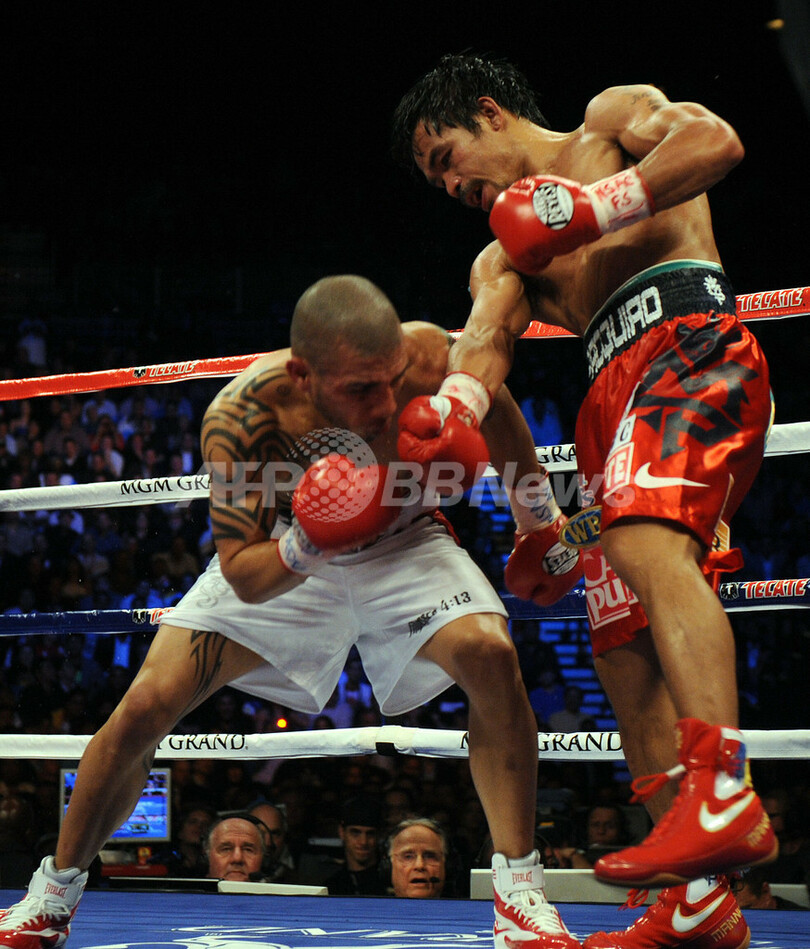 【11月15日 AFP】ボクシングWBO世界ウエルター級タイトルマッチ、挑戦者マニー・パッキャオ(Manny Pacquiao、フィリピン)は王者ミゲル・コット(Miguel Cotto、プエルトリコ)と対戦。パッキャオは12回TKO勝ちを収め、王座を奪取し、5階級制覇を達成した。