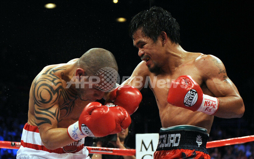 【11月15日 AFP】ボクシングWBO世界ウエルター級タイトルマッチ、挑戦者マニー・パッキャオ(Manny Pacquiao、フィリピン)は王者ミゲル・コット(Miguel Cotto、プエルトリコ)と対戦。パッキャオは12回TKO勝ちを収め、王座を奪取し、5階級制覇を達成した。