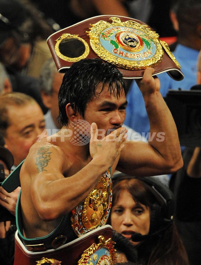 【11月15日 AFP】ボクシングWBO世界ウエルター級タイトルマッチ、挑戦者マニー・パッキャオ(Manny Pacquiao、フィリピン)は王者ミゲル・コット(Miguel Cotto、プエルトリコ)と対戦。パッキャオは12回TKO勝ちを収め、王座を奪取し、5階級制覇を達成した。