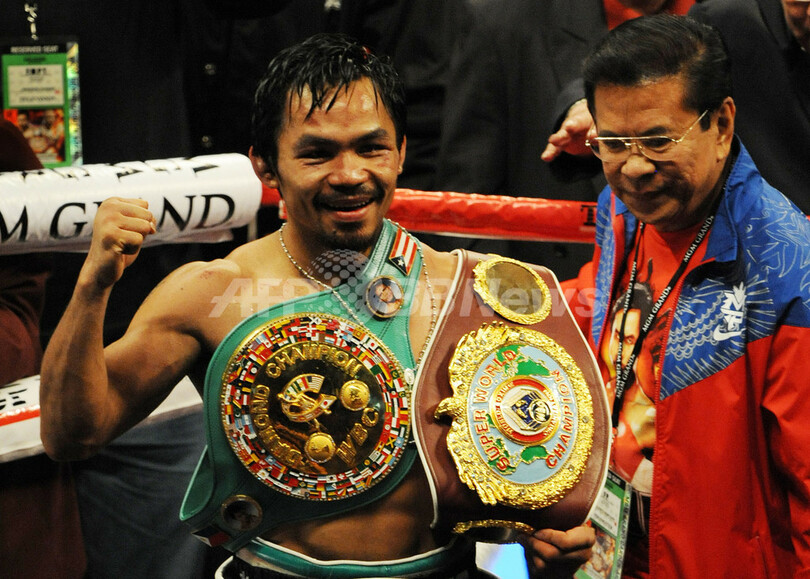 【11月15日 AFP】ボクシングWBO世界ウエルター級タイトルマッチ、挑戦者マニー・パッキャオ(Manny Pacquiao、フィリピン)は王者ミゲル・コット(Miguel Cotto、プエルトリコ)と対戦。パッキャオは12回TKO勝ちを収め、王座を奪取し、5階級制覇を達成した。