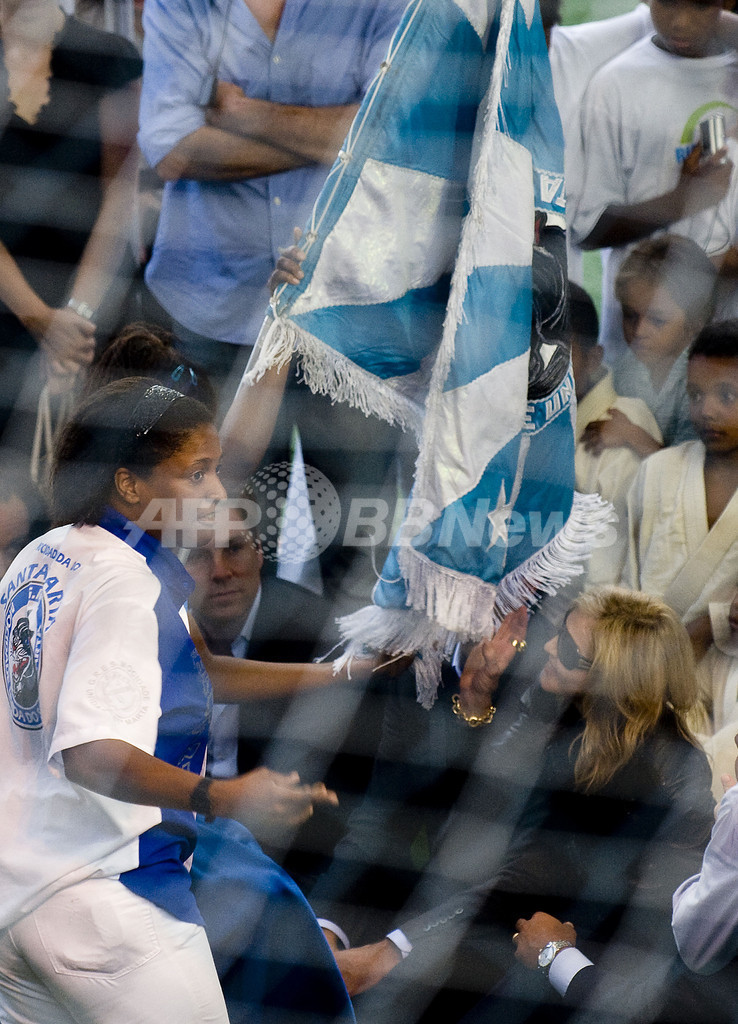 【11月16日 AFP】米歌手マドンナ(Madonna)が13日、ブラジル・リオデジャネイロ(Rio de Janeiro)のスラム街ドナ・マルタ(Dona Marta)を訪問した。(c)AFP