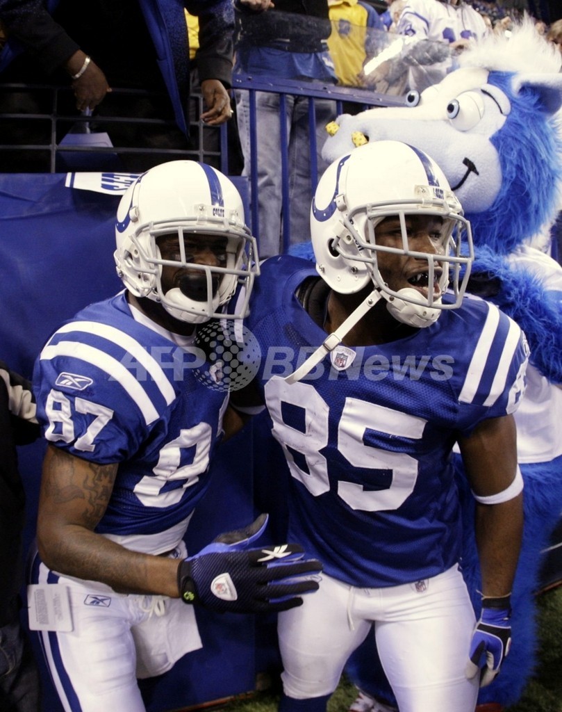 28-34とリードされていたコルツは第4クォーター残り13秒、クォーターバック(QB)のペイトン・マニング(Peyton Manning)がランニングバック(RB)のレジー・ウェイン(Reggie Wayne)に1ヤードのタッチダウンパスを成功させて逆転した。(c)AFP