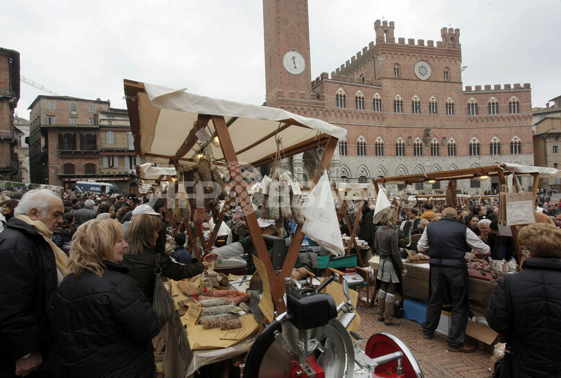 ニュース ライフ イタリア・カンポ広場で初の市場 2009年11月16日 23:15 発信地:シエナ/イタリア [ ヨーロッパ イタリア ] このニュースをシェア ‹ › ❮ 7/9 ❯ イタリア・シエナ(Siena)のカンポ広場(Piazza del Campo)で14日、過去700年で初となる市場が開かれた(2009年11月14日撮影)。(c)AFP/FABIO MUZZI 画像作成中 ! 【11月16日 AFP】イタリア・シエナ(Siena)のカンポ広場(Piazza del Campo)で14日、過去700年で初となる市場が開かれた。(c)AFP ライフ 一覧へ> メディア・報道関係・法人の方向け 写真・動画 購入のお問合せ>