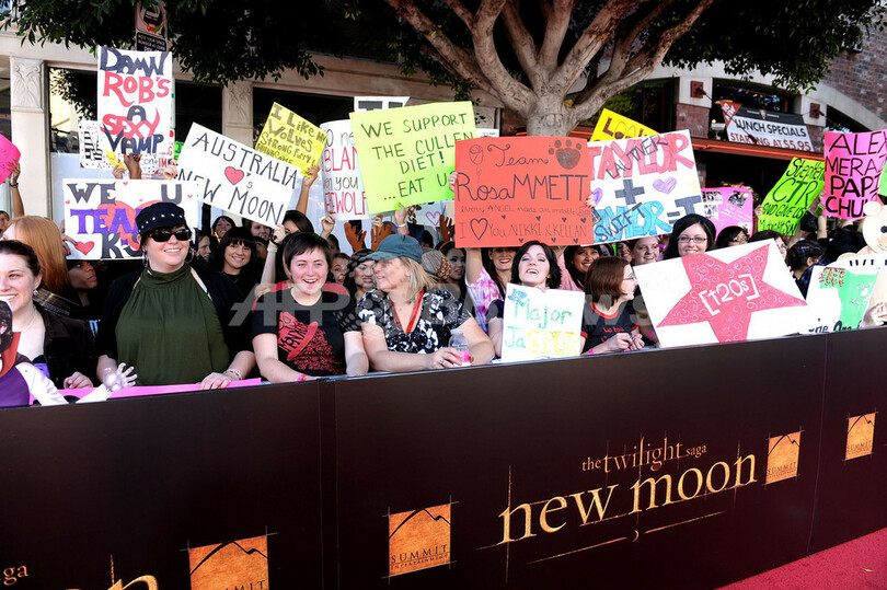 映画「トワイライト」シリーズ第2弾『ニュームーン/トワイライト・サーガ(The Twilight Saga: New Moon)』のプレミア上映会が16日、米カリフォルニア(California)州ウエストウッド(Westwood)で開催された。写真は、会場に詰めかけたファン(2009年11月16日撮影)。(c)AFP/Getty Images/Kevin Winter