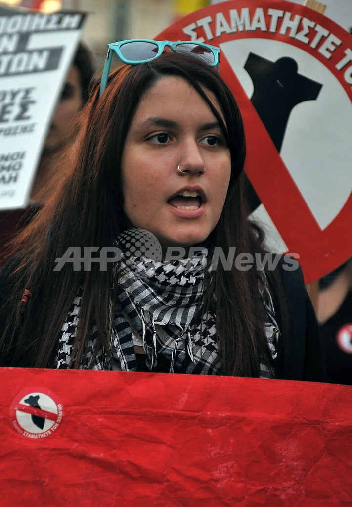 学生や若者など数万人のデモ隊は、資本主義や北大西洋条約機構(North Atlantic Treaty Organisation、NATO)への批判や移民合法化などのスローガンを叫びながらアテネ中心部を米大使館まで行進した。