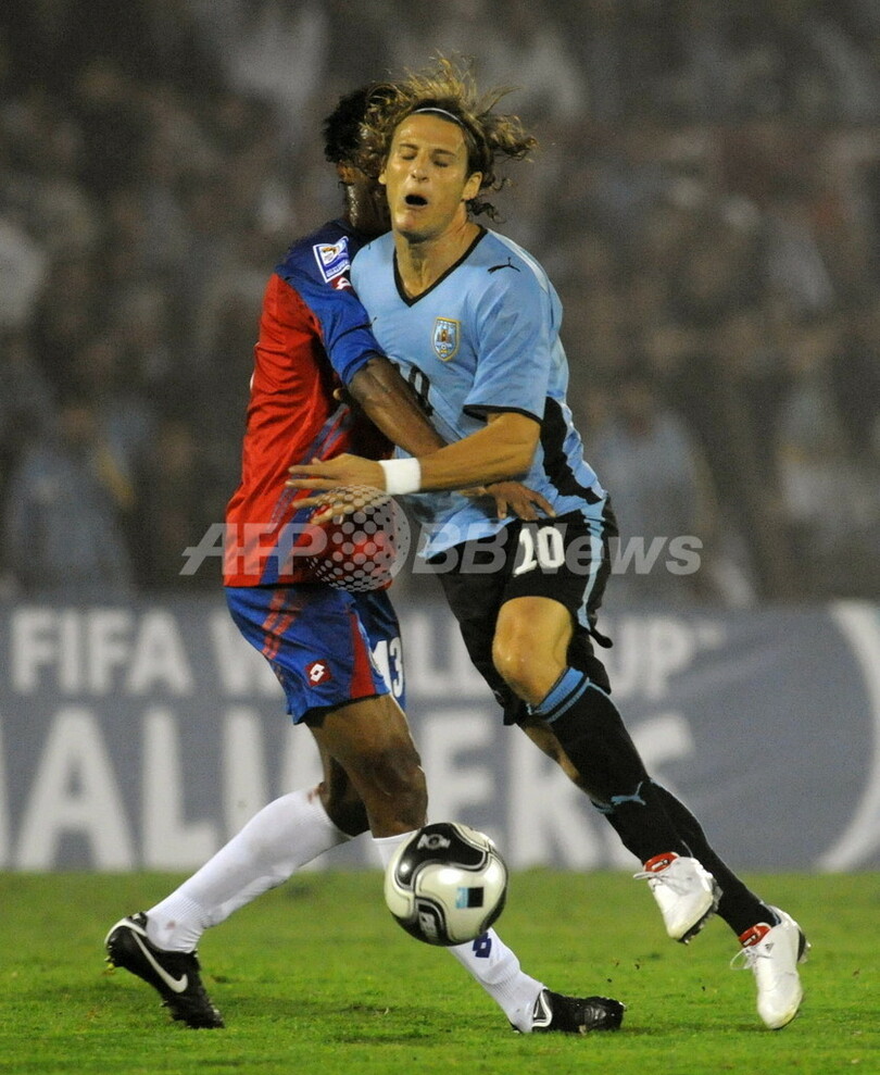 【11月19日 AFP】(写真追加)2010年サッカーW杯南アフリカ大会(2010 World Cup)大陸間プレーオフ、ウルグアイ(南米予選5位)対コスタリカ(北中米カリブ海予選4位)第2戦。試合は1-1の引き分けに終わり、2試合合計スコアを2-1としたウルグアイが本大会出場を決めた。