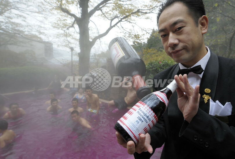 ニュース ライフ 箱根で2009年「ボジョレー・ヌーボー風呂」開始 2009年11月19日 17:45 発信地:神奈川 [ アジア・オセアニア 神奈川 ] このニュースをシェア ‹ › ❮ 4/4 ❯ 神奈川県箱根町の温泉施設、箱根小涌園ユネッサン(Hakone Kowakien Yunessun)で、19日から始まった「ボジョレー・ヌーボー風呂」(2009年11月19日撮影)。(c)AFP/TOSHIFUMI KITAMURA 画像作成中 ! 【11月19日 AFP】フランス産ワインの新酒、ボジョレー・ヌーボー(Beaujolais Nouveau)が解禁された19日、神奈川県箱根町にある温泉施設、箱根小涌園ユネッサン(Hakone Kowakien Yunessun)で毎年恒例の「ボジョレー・ヌーボー風呂」が始まった。期間は30日まで。(c)AFP ライフ 一覧へ> メディア・報道関係・法人の方向け 写真・動画 購入のお問合せ>