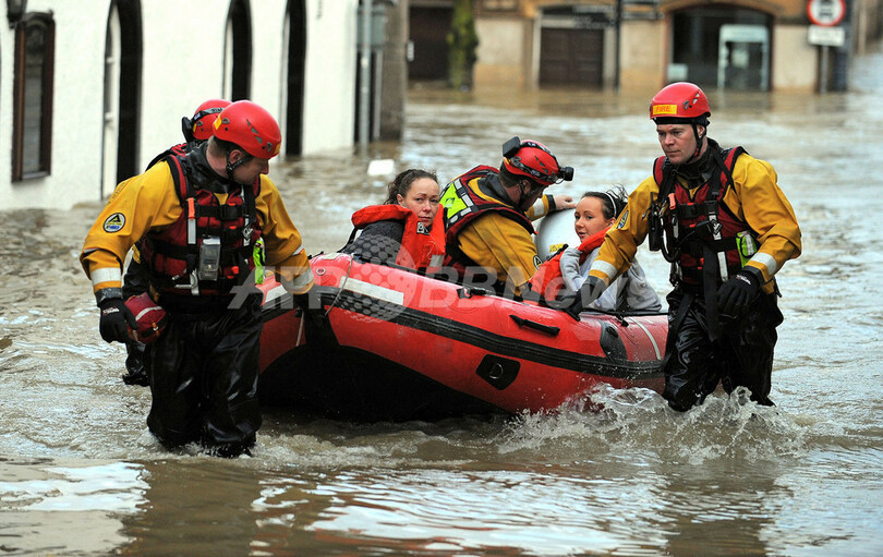 英気象当局は、カンブリア地方の6か所やスコットランドの10か所で、特に事態が深刻だとして洪水警報を発令した。(c)AFP