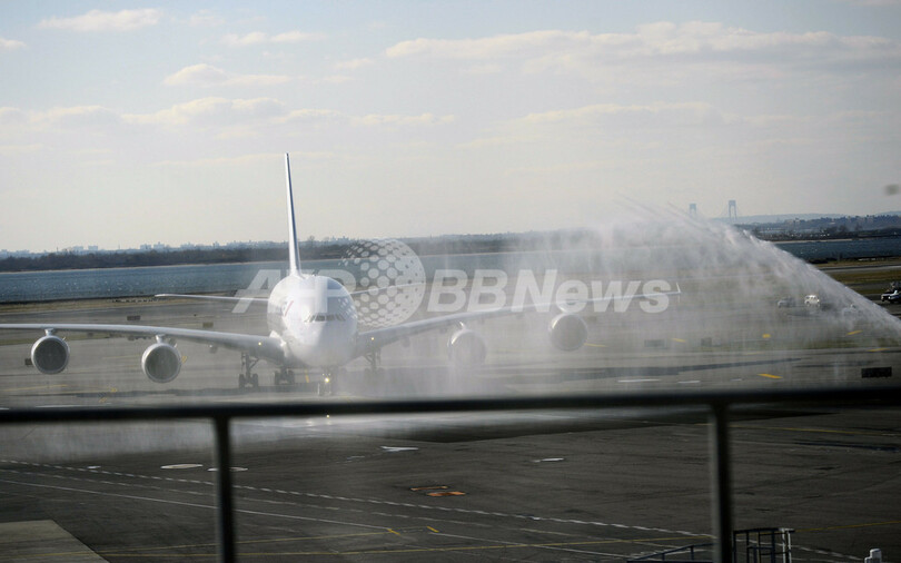 乗客538人を乗せたA380型機は、パリ(Paris)を離陸し、予定より数分早い午後1時7分(日本時間21日午前3時7分)、米ニューヨーク(New York)のジョン・F・ケネディ空港(J.F. Kennedy Airport)に着陸した。機体は着陸後、2台の消防車から放水の歓迎を受けた。 乗客のうち350人は、収益を恵まれない子どもたちのために使うオークションで航空券を購入した人たちだった。