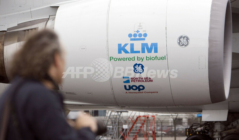 【11月24日 AFP】オランダ・アムステルダム(Amsterdam)で23日、4基のエンジンのうち1基でバイオ混合燃料を用いたKLMオランダ航空(KLM Royal Dutch Airlines)のボーイング(Boeing)747型旅客機による試験飛行が行われた。バイオ燃料を用いた旅客機飛行は、世界で初めて。
