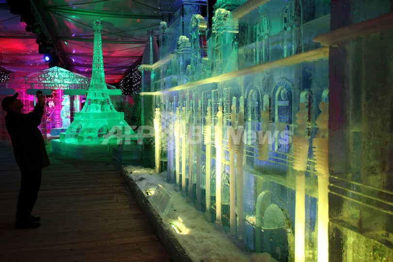 ニュース ライフ こぼれ話 シャンゼリゼ通りに「氷のパリ」が登場 2009年11月25日 10:04 発信地:パリ/フランス [ ヨーロッパ フランス ] このニュースをシェア ‹ › ❮ 4/6 ❯ フランス・パリ(Paris)のシャンゼリゼ(Champs Elysee)通りで行われている氷の彫刻展「アイス・マジック(Ice magic)」に登場した、シャンゼリゼ通り沿いにあるパリの「オテル・ド・ヴィル(Hotel de Ville、市役所)」の氷彫刻(2009年11月23日撮影)。(c)AFP/JOEL SAGET 画像作成中 ! 【11月25日 AFP】フランス・パリ(Paris)のシャンゼリゼ(Champs Elysee)通りで氷の彫刻展「アイス・マジック(Ice magic)」が開催されている。16人のアーティストがパリの名所を計440トンの氷を使って作り上げる。期間は来月28日まで。(c)AFP ライフ 一覧へ> メディア・報道関係・法人の方向け 写真・動画 購入のお問合せ>