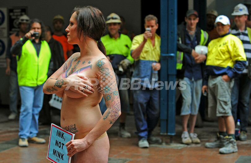 「毛皮より入れ墨を」、PETA支持のモデルが裸で抗議 オーストラリア