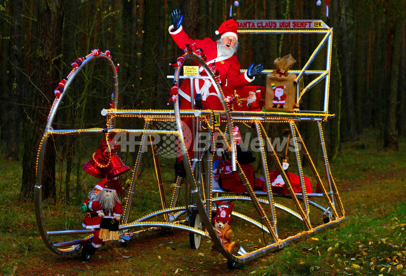 ニュース ライフ こぼれ話 名物自転車おじさん、新作はクリスマス仕様 2009年11月26日 12:04 発信地:シュトルコウ/ドイツ [ ヨーロッパ ドイツ ] このニュースをシェア ‹ › ❮ 4/6 ❯ ドイツ東部シュトルコウ(Storkow)で、クリスマス仕様の新作自転車を披露するディディ・センフト(Didi Senft)さん(2009年11月24日撮影)。(c)AFP/DDP/MICHAEL URBAN 画像作成中 ! 【11月26日 AFP】自転車競技ツール・ド・フランス(Tour de France)ファンとして有名な、ドイツのディディ・センフト(Didi Senft)さんが、また新たな自転車を生み出した。全長7メートル、高さ3メートルのクリスマス仕様のこの自転車には、約3000個の電球が取り付けられている。(c)AFP ライフ 一覧へ> メディア・報道関係・法人の方向け 写真・動画 購入のお問合せ>