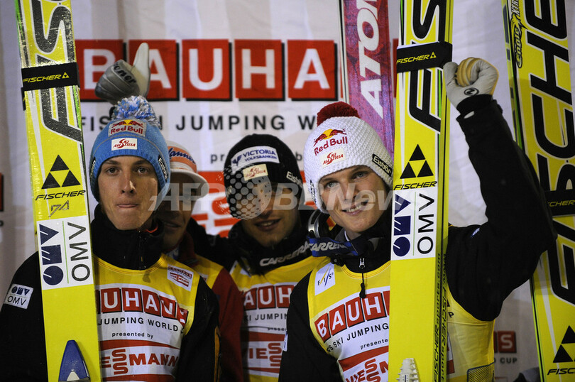 【11月28日 AFP】スキージャンプW杯2009-10開幕戦、ラージヒル団体戦。オーストリアが合計1113.6点で優勝を飾った。
