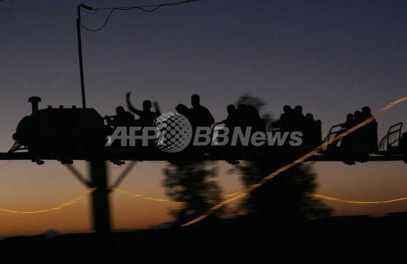 「イード・アル・アドハ」3日目を迎えたパレスチナ自治区のガザ市(Gaza City)では29日、遊園地で遊ぶ人々の姿が見られた。(c)AFP