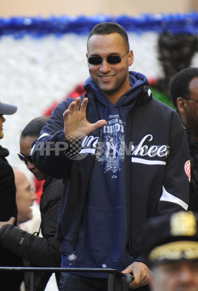 【12月1日 AFP】(2日写真追加)米メジャーリーグ(MLB)ニューヨーク・ヤンキース(New York Yankees)のデレク・ジーター(Derek Jeter)が30日、米スポーツ誌スポーツ・イラストレイテッド(Sports Illustrated)が選ぶ、2009年の最優秀スポーツ選手賞を受賞した。ヤンキースの選手が同賞を受賞するのは初めて。