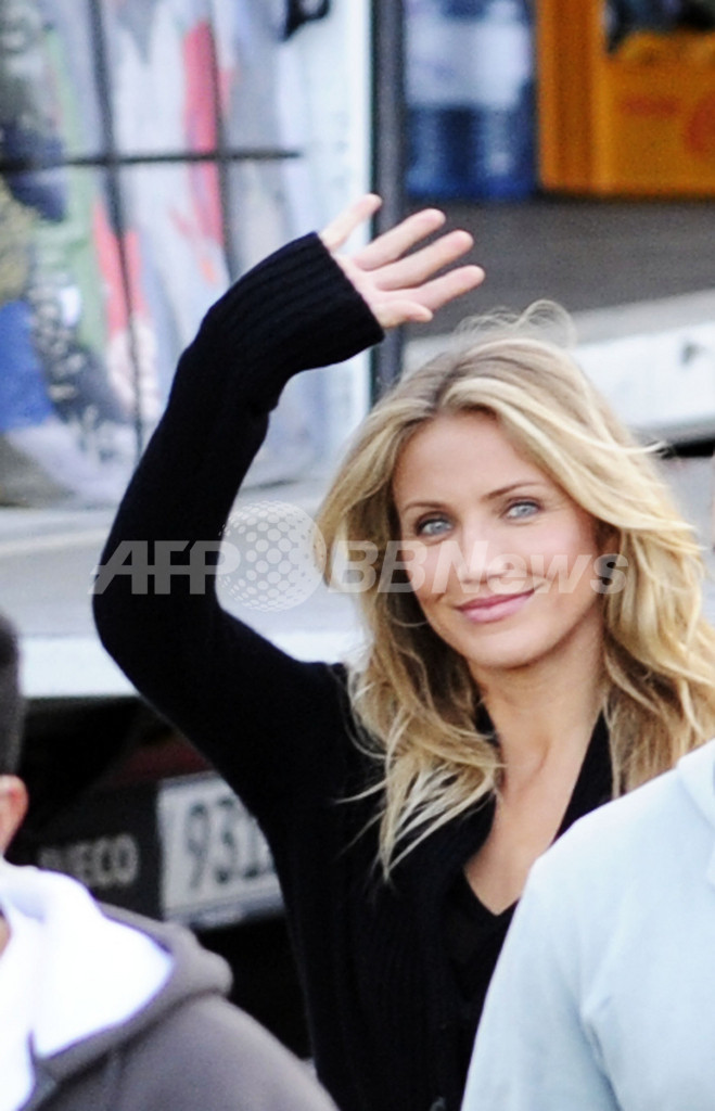 キャメロン・ディアス、撮影現場に笑顔で登場