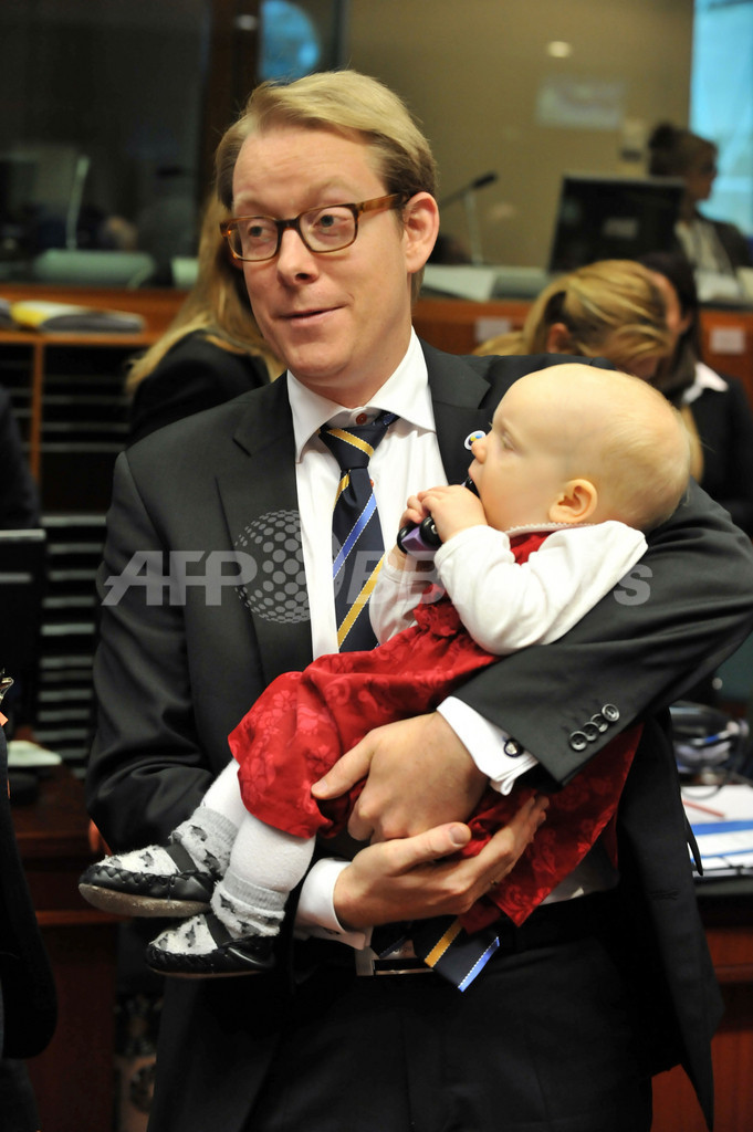 スウェーデン閣僚、EU理事会に赤ちゃん連れて「出勤」
