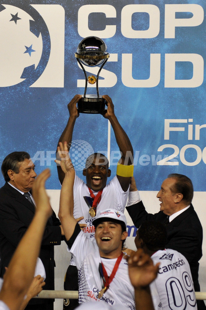 スポーツ サッカー リーガ・デ・キトが初優勝、コパ・スダメリカーナ 2009年12月3日 15:55 発信地:リオデジャネイロ/ブラジル [ 中南米 ブラジル ] このニュースをシェア ‹ › ❮ 2/8 ❯ サッカー、コパ・スダメリカーナ2009(%%2009 Copa Sudamericana%%)決勝、フルミネンセ(%%Fluminense%%)対リーガ・デ・キト(%%LDU Quito%%)第2戦。リーガ・デ・キトは0-3で敗れたが、2試合合計スコア5-4で逃げ切り初優勝を飾った。写真は表彰式でトロフィーを掲げるリーガ・デ・キトのネイセル・レアスコ(%%Neicer Reasco%%、中央)。(2009年12月2日撮影)(c)AFP/MAURICIO LIMA 画像作成中 ! 【12月3日 AFP】サッカー、コパ・スダメリカーナ2009(2009 Copa Sudamericana)決勝、フルミネンセ(Fluminense)対リーガ・デ・キト(LDU Quito)第2戦。リーガ・デ・キトは0-3で敗れたが、2試合合計スコア5-4で逃げ切り初優勝を飾った。(c)AFP サッカー 一覧へ> メディア・報道関係・法人の方向け 写真・動画 購入のお問合せ>