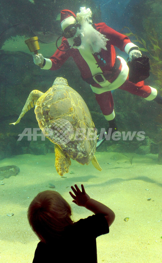 ニュース ライフ こぼれ話 食べられないでね!サメと泳ぐサンタ、豪水族館 2009年12月7日 21:05 発信地:メルボルン/オーストラリア [ アジア・オセアニア オーストラリア ] このニュースをシェア ‹ › ❮ 7/8 ❯ オーストラリアのメルボルン水族館(Melbourne Aquarium)で、サメやカメ、エイや無数の熱帯魚たちに混ざり、サンタクロースが登場した。サンタは自分がサメの餌にならないよう、餌の時間の後に登場し、クイズを出すなどして子どもたちを楽しませている(2009年12月7日撮影)。(c)AFP/William WEST 画像作成中 ! 【12月7日 AFP】オーストラリアのメルボルン水族館(Melbourne Aquarium)で、サメやカメ、エイや無数の熱帯魚たちに混ざり、サンタクロースが登場した。(c)AFP ライフ 一覧へ> メディア・報道関係・法人の方向け 写真・動画 購入のお問合せ>