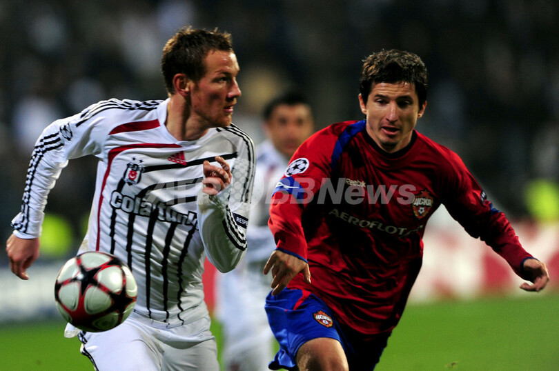 CSKAモスクワ(CSKA Moscow)が同日、ベシクタシュ(Besiktas)を2-1で下し、勝ち点10のグループ2位で決勝トーナメント進出を果たした。(c)AFP/Ryland James