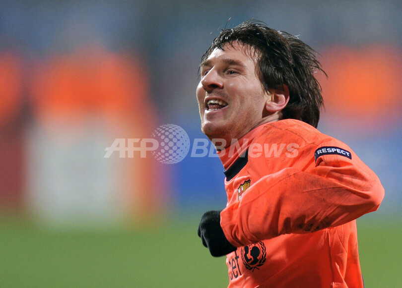 しかしバルセロナは、前半33分にエリック・アビダル(Eric Abidal)のクロスからシャビ・エルナンデス(Xavi Hernandez)が得点し1-1の同点に追いつくと、後半41分にはメッシがフリーキック(FK)を直接ゴールに決めてディナモ・キエフの望みを打ち砕いた。(c)AFP