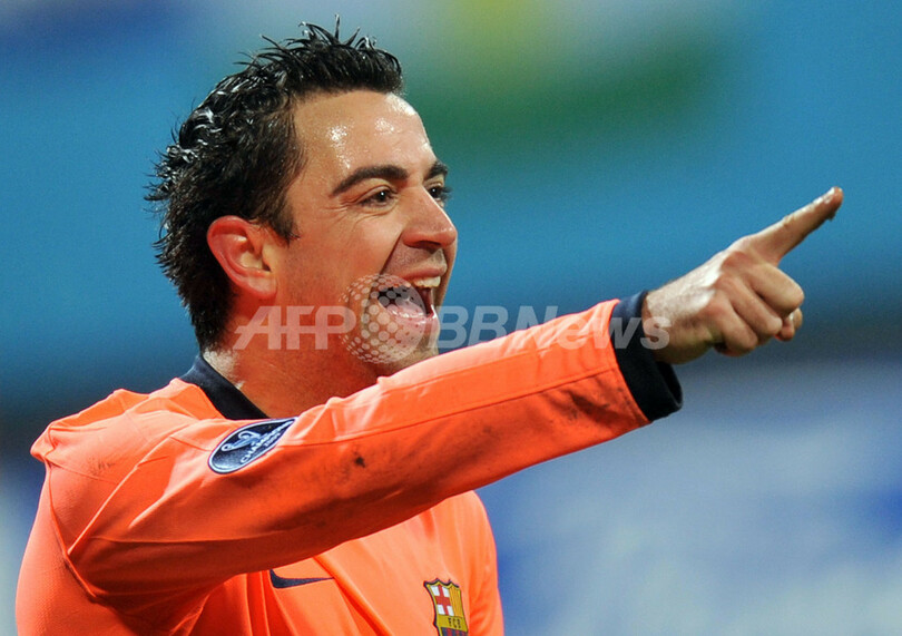 しかしバルセロナは、前半33分にエリック・アビダル(Eric Abidal)のクロスからシャビ・エルナンデス(Xavi Hernandez)が得点し1-1の同点に追いつくと、後半41分にはメッシがフリーキック(FK)を直接ゴールに決めてディナモ・キエフの望みを打ち砕いた。(c)AFP