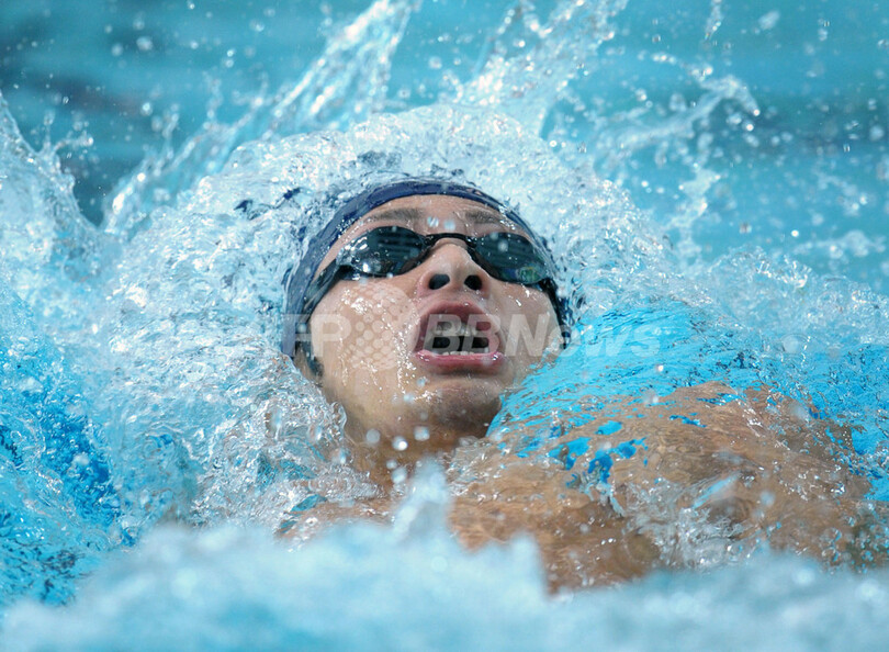 また、藤井拓郎(Takuro Fujii)が100メートル自由形を48秒76、100メートルバタフライを51秒51で制し、この日だけで二つの金メダルを獲得している。(c)AFP/Peter Stebbings