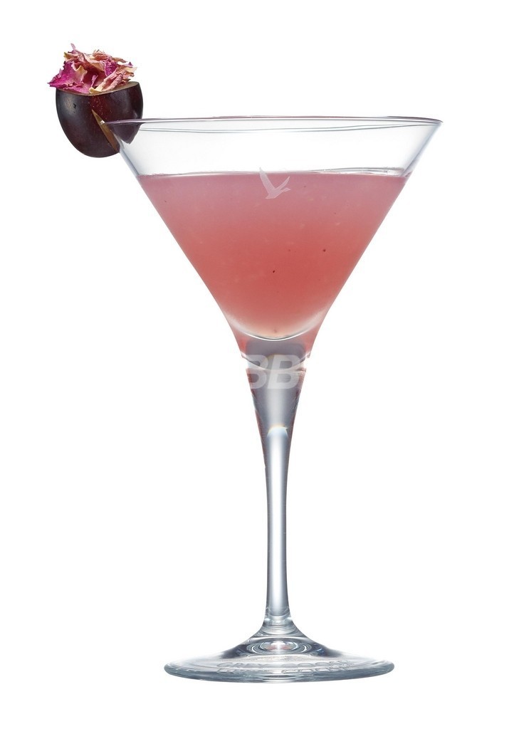 ブドウをペストルで軽く潰し、すべての材料をボストンシェーカーに入れシェイク。マティーニグラスに注ぎ、ブドウの上にローズ・ピンクをのせて飾る。
