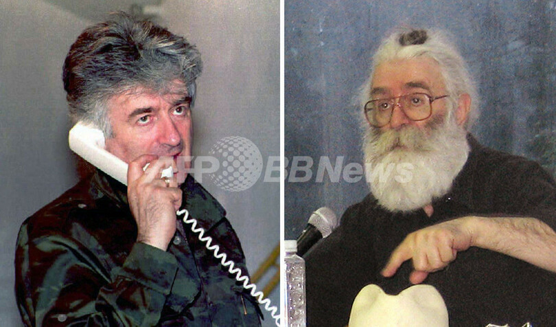 セルビア当局は2008年7月21日、旧ユーゴスラビア国際戦犯法廷(International Criminal Tribunal for the former Yugoslavia、ICTY)に戦犯として起訴されたボスニア・ヘルツェゴビナ紛争(1992-95年)当時のセルビア人指導者、ラドバン・カラジッチ(Radovan Karadzic)被告を拘束した。同被告の身柄は同30日、ICTYの戦犯拘置施設に移送された。写真左はボスニア・ヘルツェゴビナのバニャルカ(Banja Luka)で電話で話すカラジッチ被告(1995年撮影)。右はセルビア・ベオグラード(Belgrade)で撮影された同被告(撮影日不明)。(c)AFP