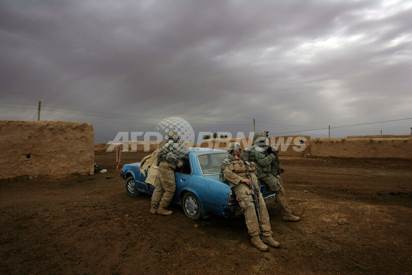 イラク北部のモスル(Mosul)で2008年3月13日、武装集団によって2月29日に拉致されたカトリック教会カルデア派のパウロス・ファライ・ラホ(Paulos Faraj Rahho)大司教が遺体で見つかった。イラク中央刑事裁判所(Iraqi Central Criminal Court、ICCC)は5月、殺人に関与した罪で、Ahmed Ali Ahmed被告に死刑を言い渡した。写真は宗派抗争に巻き込まれて略奪され、火を付けられたイラク・ディヤラ(Diyala)州の村を調べる米兵ら(2008年3月13日撮影)。(c)AFP/DAVID FURST