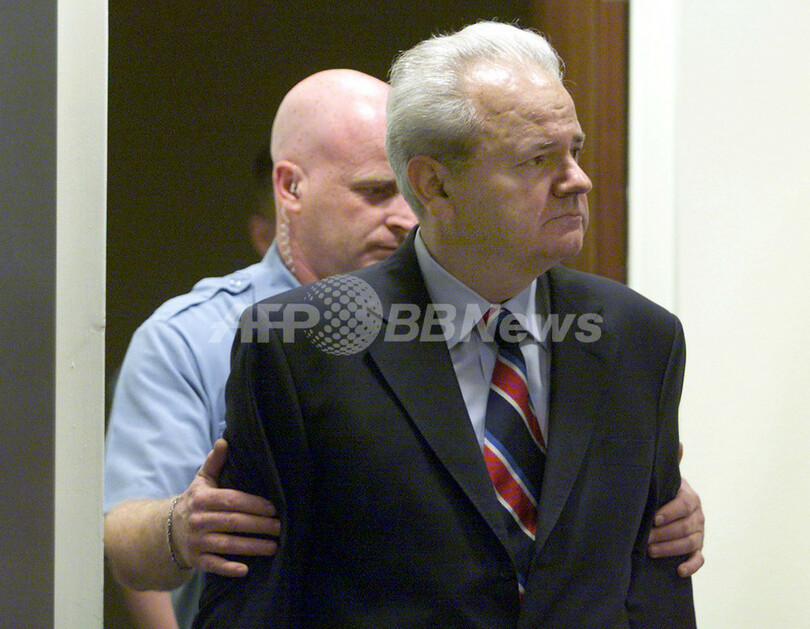 オランダ・ハーグ(The Hague)の国連旧ユーゴ国際戦犯法廷(International Criminal Tribunal for the former Yugoslavia、ICTY)に初めて現れたスロボダン・ミロシェビッチ(Slobodan Milosevic)元ユーゴスラビア大統領。その後、ユーゴスラビア・コソボ自治州での紛争でアルバニア系住民殺害を指示したなどとして「人道に対する罪」で起訴されたが、2006年3月11日、拘置所の独房で死亡しているのが見つかった。(2001年7月3日撮影)。(c)AFP/JERRY LAMPEN