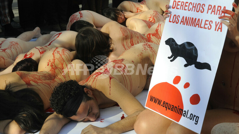 ニュース ライフ 血まみれヌードで「動物の権利」訴える、マドリード 2009年12月13日 17:13 発信地:マドリード/スペイン [ ヨーロッパ スペイン ] このニュースをシェア ‹ › ❮ 3/9 ❯ スペインの首都マドリード(Madrid)中心部の広場プエルタ・デル・ソル(Puerta del Sol)で12日、動物愛護団体「Equanimal」のメンバーが、血のりを浴びたヌード姿で動物の権利保護を訴えた。10日は「International Animal Rights Day(国際動物の権利デー)」だった(2009年12月12日撮影)。(c)AFP/DOMINIQUE FAGET 画像作成中 ! 【12月13日 AFP】スペインの首都マドリード(Madrid)中心部の広場プエルタ・デル・ソル(Puerta del Sol)で12日、動物愛護団体「Equanimal」のメンバーが、血のりを浴びたヌード姿で動物保護を訴えた。(c)AFP ライフ 一覧へ> メディア・報道関係・法人の方向け 写真・動画 購入のお問合せ>