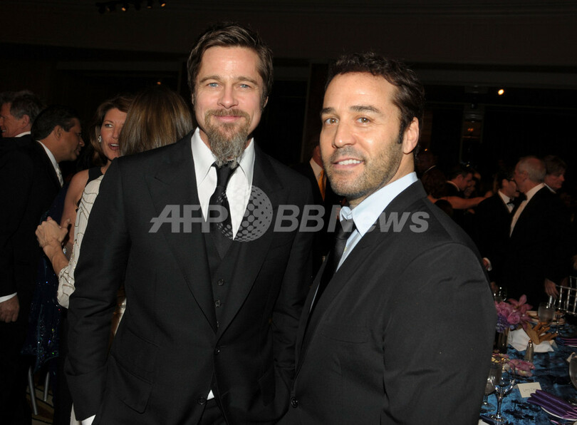 のビバリーウィルシャーホテル(Beverly Wilshire Hote)で開かれた「ユニセフボール(UNICEF Ball)」に出席した俳優のブラッド・ピット(Brad Pitt、左)とシジェレミー・ピヴェン(Jeremy Piven、2009年12月10日撮影)。(c)AFP/Getty Images/Kevin Winter
