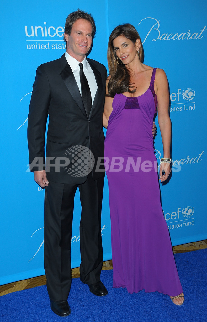 のビバリーウィルシャーホテル(Beverly Wilshire Hote)で開かれた「ユニセフボール(UNICEF Ball)」に出席したモデルのシンディ・クロフォード(Cindy Crawford、左)とランディ・ガーバー(Rande Gerber)夫妻(2009年12月10日撮影)。(c)AFP/Getty Images/Jason Merritt